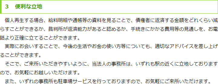 個人再生につきましても、個人再生の申立てを得意としている弁護士が、適切かつスピーディーに対応させていただきますので、安心してお任せいただければと思います。